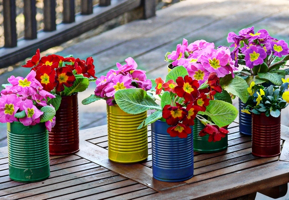 2.รีไซเคิลกระป๋องเป็นกระถาง Colorful