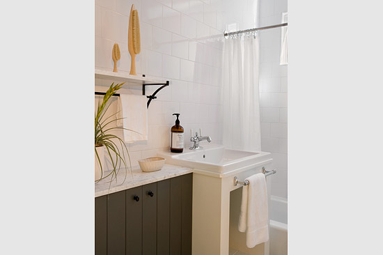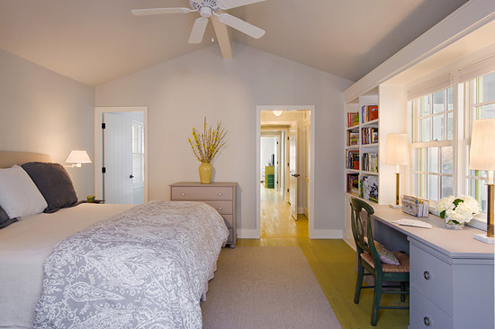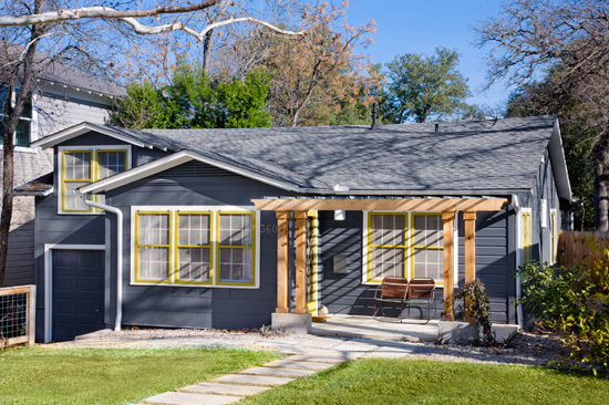 บ้านหลังนี้เป็นบ้านชั้นเดียว โครงสร้างไม้ทั้งหลัง ทาผนังภายนอกด้วยสีเทาคลาสสิก ใช้หลังคาทรงหน้าจั่ว มีระแนงไม้เป็นมุมพักผ่อนหน้าบ้าน ดูสวยมีสเน่ห์ ด้านหลังบ้านต่อเติมระเบียงเป็นมุมพักผ่อน ทาพื้นไม้ด้วยสีเหลืองพาสเทล เข้ากับสีเทาและสีขาวของตัวบ้าน