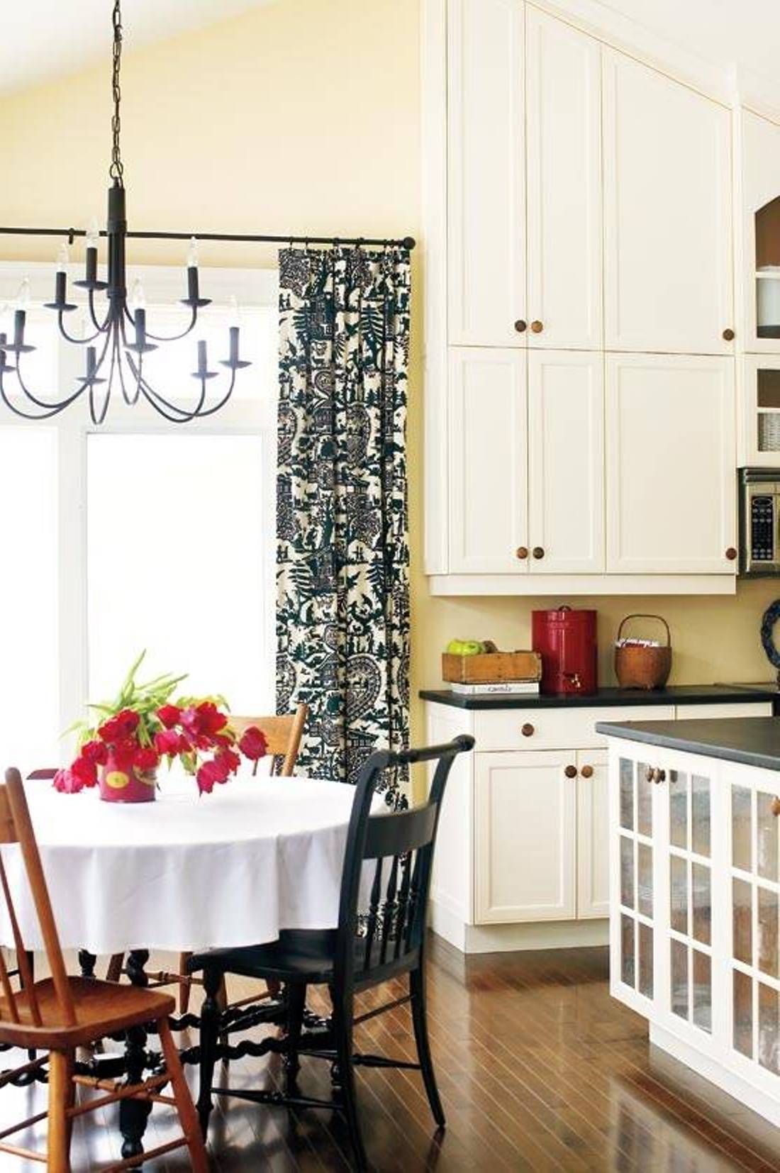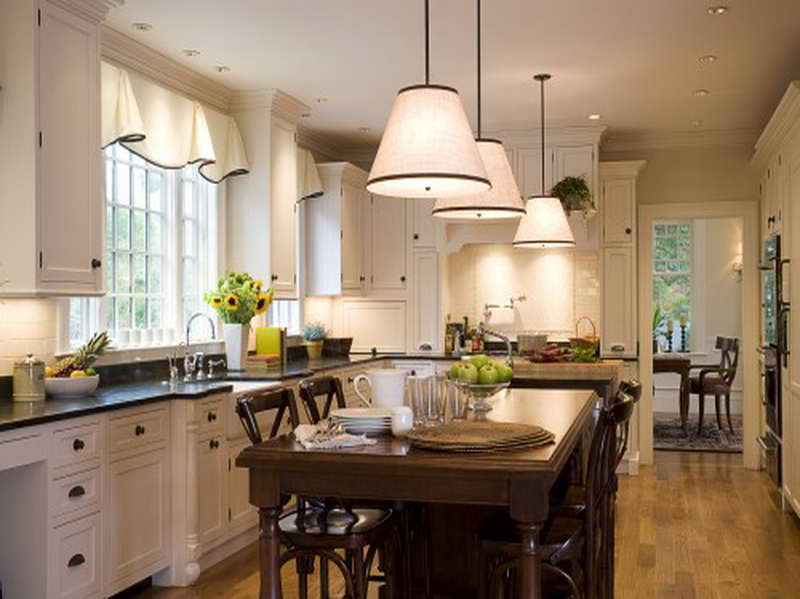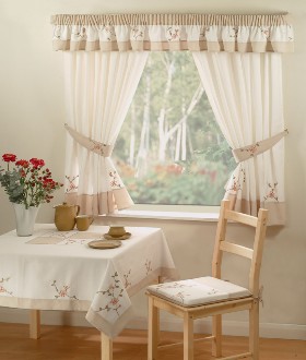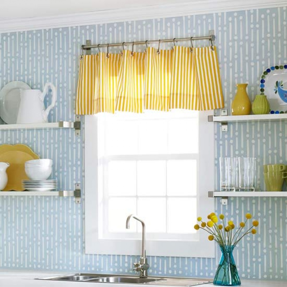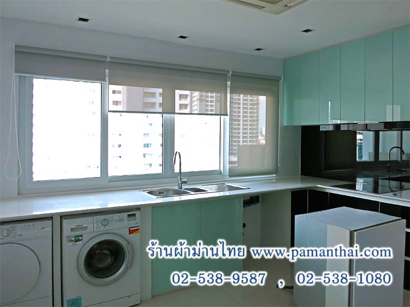 ห้องครัวที่ใช้ประกอบอาหารอยู่ทุกวัน ควรมีตัวดูดกลิ่นและควันจากการทำอาหาร และมีหน้าต่างเพื่อให้มีการถ่ายเทอากาศภายในห้องครัว แต่หากมีเพียงหน้าต่างโล่งๆอาจยังไม่พอ ควรติดตั้งผ้าม่านในห้องครัวด้วยค่ะ สำหรับการเลือกแบบม่านหน้าต่างห้องครัวนั้น ควรเลือกแบบที่สามารถปรับควบคุมแสงจากภายนอกได้ เพื่อไม่ให้ห้องครัวร้อนจนเกินไป เช่น ม่านแบบมู่ลี่ ฯลฯ สำหรับม่านหน้าต่างห้องครัวที่ดีควรกันฝุ่นจากภายนอกไม่ให้เข้ามาปนเปื้อนเวลาทำอาหาร รวมทั้งกันควันจากการทำอาหารไม่ให้กระจายออกไปส่วนอื่นของบ้านอีกด้วย เช่น ผ้าม่านแบบม้วน ฯลฯ นอกจากนี้โทนผ้าม่านสีเข้มติดตั้งไว้บริเวณโต๊ะอาหาร จะช่วยกระตุ้นความอยากอาหาร แต่ในโซนปรุงอาหารควรใช้โทนสีอ่อนๆ เพื่อให้ผู้ปรุงอาหารรู้สึกสบายตาค่ะ