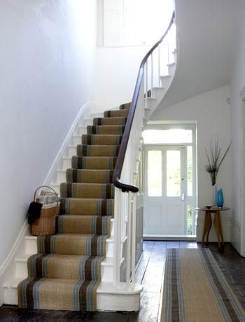 การออกแบบบ้านที่มีสองชั้นขึ้นไปนั้น จะมีบันไดทางขึ้นไปชั้นบนเพื่อเชื่อมต่อกันภายในบ้าน  โดยบริเวณทางเดินขึ้น-ลงบันไดบ้านนั้น มีความสำคัญเช่นกันกับส่วนอื่นๆของบ้าน เราควรจัดให้บริเวณบันไดทางขึ้นให้เป็นระเบียบ ไม่มีสิ่งของวางเกะกะขวางทาง  เพื่อความปลอดภัยและสะดวกสบายของผู้อยู่อาศัย ในแง่ของฮวงจุ้ย บันไดเป็นจุดเชื่อมต่อระหว่างชั้น มีการถ่ายเทกระแสพลังงานระหว่างชั้นบนและชั้นล่าง สิ่งสำคัญคือ ห้ามวางบันไดทางขึ้นไว้ตรงกับประตูบ้าน เพราะทิศทางจะไหลออกนอกบ้าน ส่งผลให้ทำการค้ากิจการใดๆจะสิ้นทรัพย์ เก็บทรัพย์ไม่อยู่ ตำแหน่งบันไดที่ดีควรวางไว้ข้างบ้าน เช่น ถ้าประตูบ้านอยู่ทางขวาก็วางบันไดทางซ้าย ถ้าประตูอยู่ทางซ้ายก็วางบันไดไว้ทางขวา ในบางตำราฮวงจุ้ยบอกไว้ว่า ตำแหน่งบันไดอยู่ด้านซ้ายของบ้านเป็นตำแหน่งที่ดีที่สุด เพราะเป็นตำแหน่งมังกรเขียว จะนำมาซึ่งความมังคั่งโชคลาภและความร่มเย็นเป็นสุขแก่คนในบ้าน สำหรับฮวงจุ้ยบางอย่างนั้น ถือว่าตรงกับความเป็นจริง เช่น ไม่ควรทำบันไดให้ชันและแคบ บันไดที่ดีจะต้องลาดชันไม่เกิน 45 องศา และพื้นที่หน้าตัดกว้างเกินขนาดเท้า เพื่อการก้าวขึ้น-ลงบันไดที่สะดวก ปลอดภัย ป้องกันอุบัติเหตุที่คาดไม่ถึง