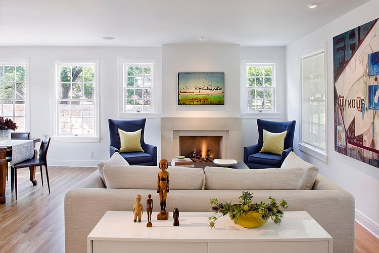 ตามมาชมการตกแต่งภายในบ้านกันค่ะ ผนังและเพดานบ้านทาสีขาวทั้งหมด ทำให้บ้านดูสว่างตา โปร่งโล่ง แล้วยังมีหน้าต่างกระจกรอบบ้านช่วยเรื่องการถ่ายเทอากาศอีกด้วย สำหรับเฟอร์นิเจอร์ตกแต่ง ส่วนใหญ่เป็นสไตล์โมเดิร์น แล้วเพิ่มสีสันจากภาพติดผนังงานศิลป์ ไม่ให้ผนังดูขาวโล่งจนเกินไป