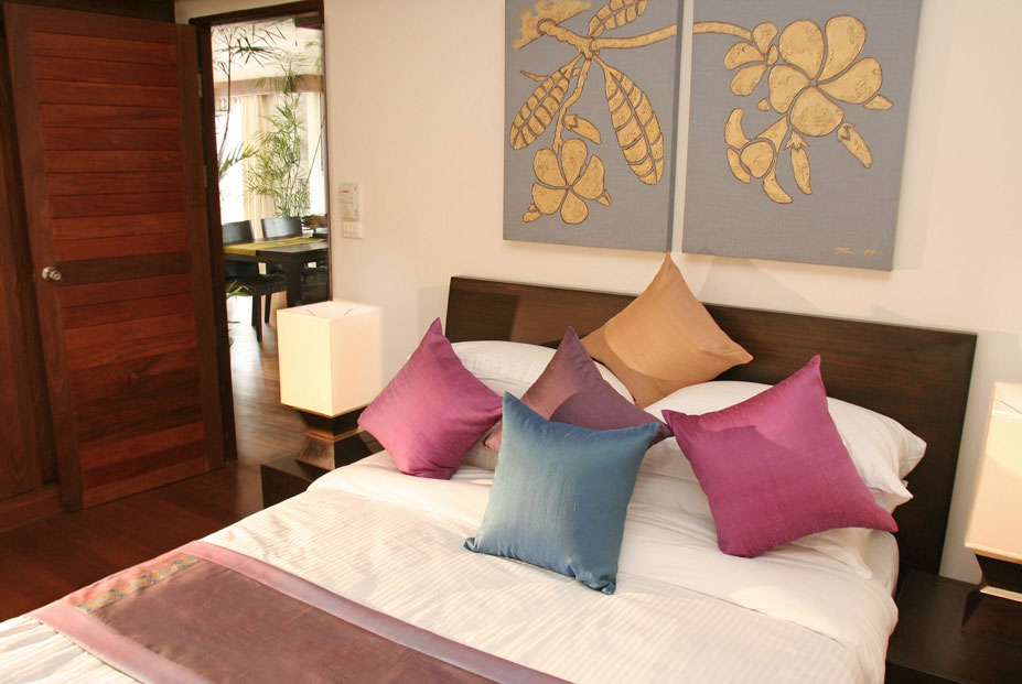 ภายในบ้านพักตากอากาศหลังนี้ ตกแต่งในสไตล์ไทย ทั้งเฟอร์นิเจอร์ สิ่งของเครื่องใช้ ของประดับตกแต่ง โทนสีสบายตา รวมถึงไม้ประดับภายในบ้านคือดอกกล้วยไม้สีม่วง นอกจากนี้ การปูพื้นด้วยพื้นไม้ บานประตูไม้ หน้าต่างไม้ และเฟอร์นิเจอร์ไม้หลายชิ้น เช่น เตียงนอน โต๊ะเครื่องแป้ง ตู้เก็บของ ราวตากผ้า โต๊ะทำงาน ฯลฯ ยิ่งทำให้ได้บรรยากาศความเป็นไทย เป็นที่ชื่นชอบของนักท่องเที่ยวต่างชาติยิ่งนัก