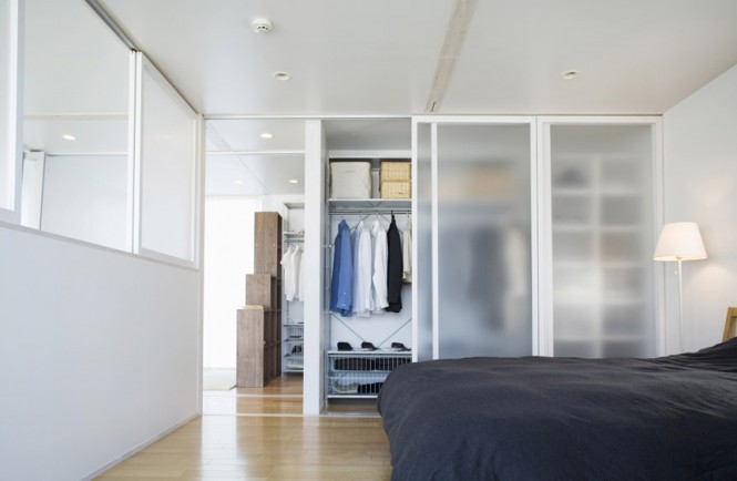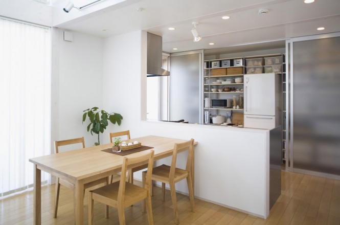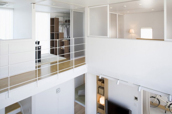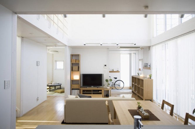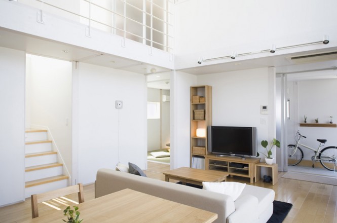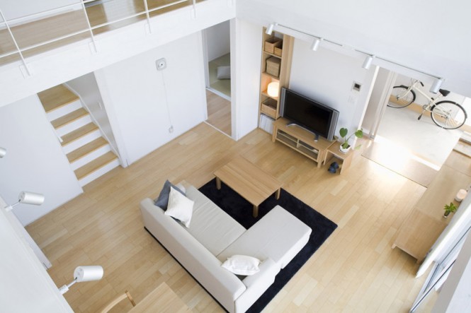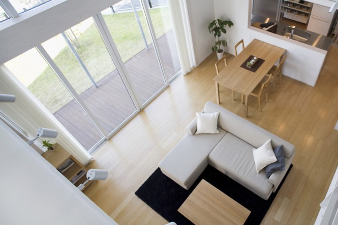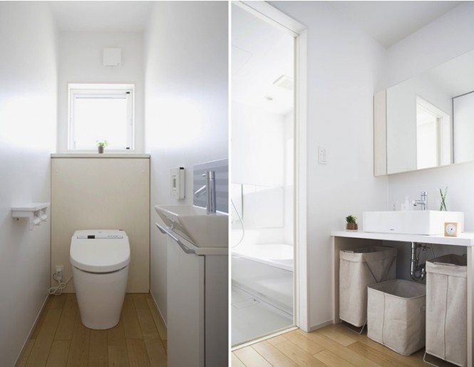 ” บ้านโมเดิร์นในธีมสีขาว ” บ้านสวยทันสมัยหลังนี้เป็นบ้านสไตล์ญี่ปุ่น เมื่อมองมุมสูงแล้วมีลักษณะคล้ายลูกบาศก์ มีสวนสนามหญ้าล้อมและรั้วรอบบ้าน ผนังด้านหน้าติดกระจกใสเป็นซุ้มประตูหน้าต่าง เข้าไปในตัวบ้านเริ่มจากพื้นที่โซฟาส่วนกลางที่เป็นศูนย์รวมของบ้าน ถัดไปเป็นห้องครัวและโต๊ะอาหาร อีกฝั่งเป็นห้องน้ำ ห้องนั่งเ่ล่นแบบโต๊ะญี่ปุ่น และห้องอเนกประสงค์ต่างๆ ได้แก่ ห้องเก็บของ ห้องซักรีด เมื่อขึ้นไปชั้นลอยเป็นห้องนอน ห้องทำงาน และห้องแต่งตัว นอกจากสถาปัตยกรรมที่โดดเด่นแล้ว ด้วยการตกแต่งภายในที่เรียบง่าย ธีมสีขาวที่ให้ความรู้สึกสบาย และเพิ่มความเป็นธรรมชาติจากเฟอร์นิเจอร์ไม้สวยๆ ได้เนรมิตออกมาเป็นบ้านสไตล์ญี่ปุ่น บ้านโมเดิร์นในธีมสีขาวหลังนี้ค่ะ