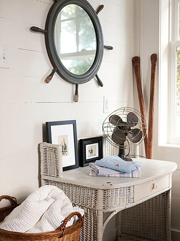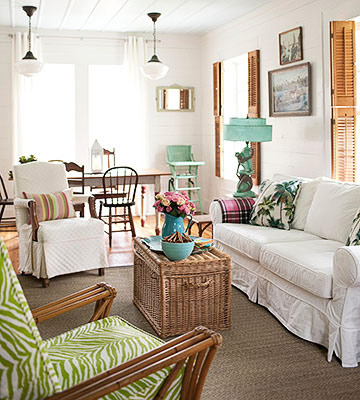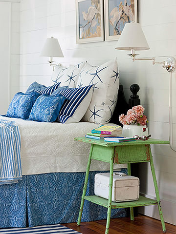 บ้านสไตล์ cottage เป็นอย่างไร ? cottage แปลว่า ที่พักตากอากาศหลังเล็ก เช่น กระท่อม บังกะโล เป็นต้น บ้านสไตล์ cottage จึงเน้นความใกล้ชิดธรรมชาติ มีสวนรื่มรื่นรอบบ้าน บางหลังอยู่ติดชายหาดชายทะเล ตกแต่งด้วยสไตล์คลาสสิก เรียบง่าย มีการผสมผสานเฟอร์นิเจอร์ที่ทำจากวัสดุธรรมชาติ อย่างเช่น บ้านหลังนี้เป็นบ้านสไตล์ cottage ใกล้ริมชายหาด ภายนอกบ้านทาสีฟ้าอ่อนสดใส ภายในบ้านเน้นโทนสีฟ้า เีขียว ขาว ได้อารมณ์ทะเลสีคราม บรรยากาศภายในบ้านผ่อนคลายสบายๆ แล้วเพิ่มสีสันความสดชื่นจากวัสดุตกแต่งบ้าน อย่าลืมว่าบ้านสไตล์นี้ เน้นความคลาสกสิก เรียบง่าย ไม่ใช่สไตล์โมเดิร์น ดังนั้น ควรเลือกตกแต่งด้วยเฟอร์นิเจอร์ให้เข้ากับบรรยากาศภายในบ้านด้วยค่ะ
