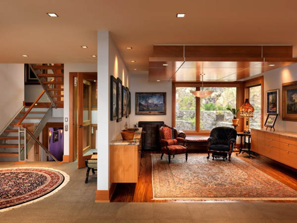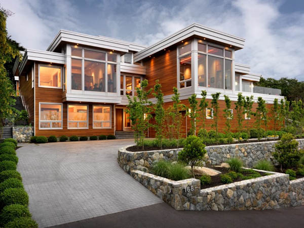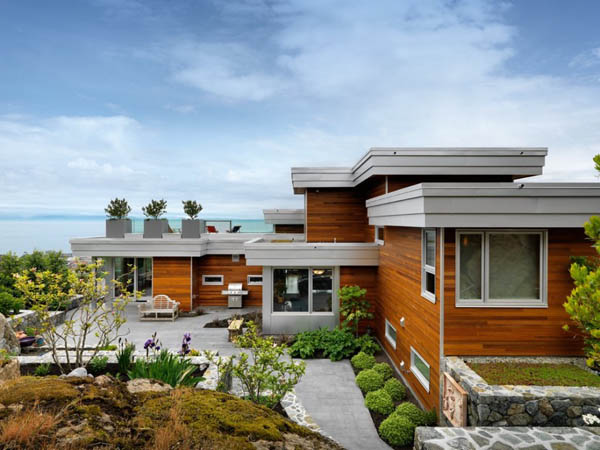 บ้านหลังนี้ตั้งอยู่ที่เมืองวิกตอเรีย บริทิช โคลัมเบีย ประเทศแคนาดา เพียงแค่มองจากภายนอก ยังไม่เห็นรายละเอียดด้านใน ก็เห็นได้ถึงความสวยงามและความงดงาม ด้วยบรรยากาศริมทะเล ท่ามกลางธรรมชาติป่าเขา ตัวบ้านออกแบบให้มีหลายส่วนเชื่อมต่อกัน มีความตื้น-ลึก ความสูง-ต่ำ ลดหลั่นกันเป็นระดับ ดูสวยมีมิติ โครงสร้างของบ้านเป็นบ้านไม้ และสวนรอบบ้านตกแต่งด้วยหินธรรมชาติ เน้นปลูกต้นไม้สีเขียวล้วน ดูแล้วเป็นองค์ประกอบของธรรมชาติจริงๆ ทั้งท้องฟ้า น้ำทะเล บ้านไม้ สวนหิน และต้นไม้เขียวขจี