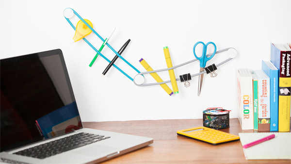 สำหรับโต๊ะทำงานขนาดเล็ก อาจไม่สะดวกที่ต้องมีอุปกรณ์เครื่องเขียนวางเต็มโต๊ะไปหมด คุณสามารถนำเครื่องเขียนชิ้นเล็กชิ้นน้อยไปเก็บไว้บนผนัง แล้วให้มีแค่โน้ตบุ้ค สมุดจดบันทึก ปากกา และกาแฟแก้วโปรด เท่านั้นพอค่ะ