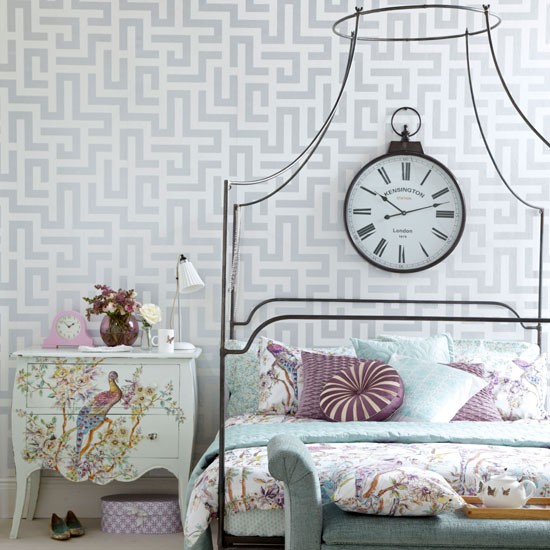 การแต่งห้องนอนวินเทจ ไม่จำเป็นต้องตกแต่งให้แลดูเก่าโทรมหรือคลาสสิกเสมอไปค่ะ สามารถใช้ลวดลายวินเทจแต่งออกมาให้ดูสดใสเป็นห้องนอนวินเทจแบบโมเดิร์นได้อีกด้วยค่ะ โดยเพิ่มความสว่างให้ห้องดูกว้างด้วยวอลเปเปอร์สีอ่อน หรือทาสีห้องโทนขาวให้ตัดกับของประดับตกแต่งต่างๆ เช่น กรอบรูปเก๋ๆ รูปภาพงานศิลป์ แจกันดอกไม้สวยๆ นาฟิกาแขวน เฟอร์นิเจอร์ดีไซน์เก๋ๆ หรือลายดอกน่ารักๆจากชุดที่นอน เป็นต้น เพียงเท่านี้ก็จะได้ห้องนอนวินเทจสไตล์โมเดิร์นสวยเก๋สำหรับบรรยากาศสบายๆที่บ้านของคุณ