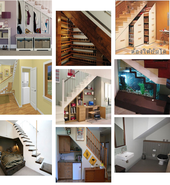 หากที่บ้านของคุณมีพื้นที่ห้องใต้บันได จะปล่อยทิ้งว่างไว้ก็น่าเสียดาย เราสามารถใช้ประโยชน์จากห้องใต้บันไดสำหรับการจัดเก็บอุปกรณ์ข้าวของภายในบ้านเพื่อความเป็นระเบียบเรียบร้อย หรือจะดัดแปลงห้องใต้บันไดให้เป็นพื้นที่ใช้สอยต่างๆ เริ่มจากประยุกต์ส่วนพื้นที่ใต้บันไดให้เป็นชั้นวางของ เช่น ชั้นวางหนังสือ ชั้นวางอุปกรณ์ครัว ตู้เก็บเสื้อผ้า โต๊ะทำงาน หรือแม้แต่ทำเป็นห้องน้ำ ส่วนใหญ่ห้องใต้บันไดจะมีพื้นที่ไม่มากนัก จึงควรเลือกใช้เฟอร์นิเจอร์ตกแต่งขนาดกะทัดรัดและเคลื่อนย้ายสะดวก เพียงเท่านี้คุณก็สามารถเนรมิตพื้นที่ห้องใต้บันไดให้สวยงามและมีประโยชน์กับคนในบ้านได้แล้วค่ะ