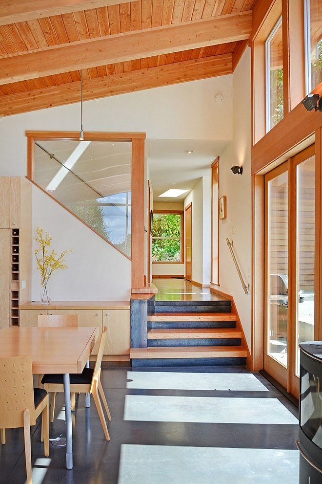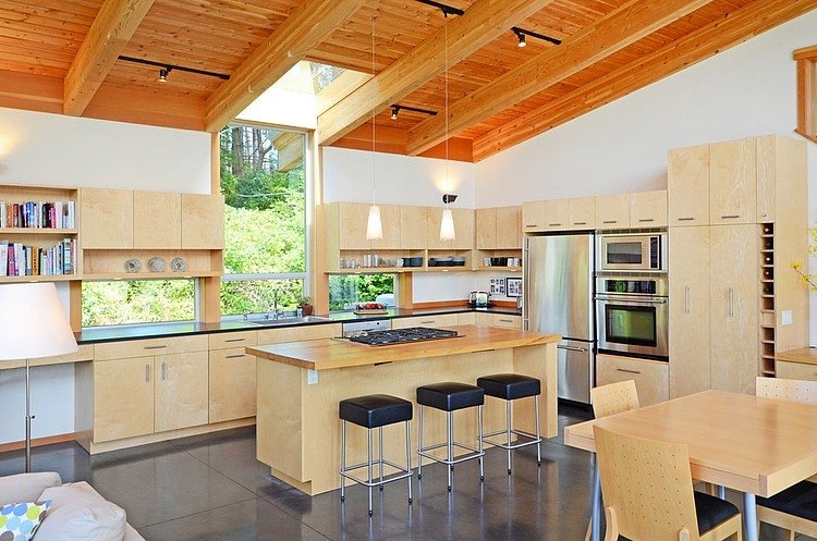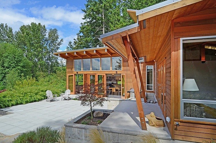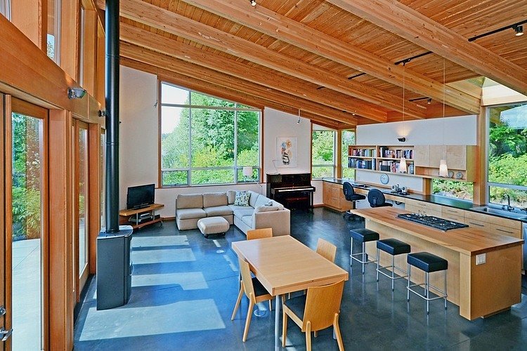 วันนี้โฮมเดคมีแบบบ้านไม้ชั้นเดียว สไตล์เรียบง่ายและดูดี ท่ามกลางธรรมชาติอันร่มรื่น มาให้ชมกันค่ะ เป็นตัวอย่างแบบบ้านพอเพียง มีความเป็นอยู่อย่างเรียบสงบ หลีกหนีความวุ่นวายจากตัวเมือง แปลนบ้านเป็นรูปตัวแอล L ล้อมรอบด้วยต้นไม้ใหญ่ พื้นที่ว่างตรงกลางทำเป็นลานพักผ่อน เข้าไปในตัวบ้านมีพื้นที่ใช้สอยขนาดกำลังพอดี ไม่เล็กไม่ใหญ่จนเกินไป ตกแต่งด้วยเฟอร์นิเจอร์ไม้เข้ากับโครงบ้าน ช่างดูอบอุ่น สบายตายิ่งนัก มีการต่อเติมส่วนของชั้นลอยไว้เป็นพื้นที่อเนกประสงค์ เป็นแบบบ้านพอเพียงที่มีสิ่งอำนวยความสะดวกพื้นฐานที่จำเป็นในชีวิตประจำวัน เหมาะกับการอยู่อาศัยแบบพึ่งพาตนเอง ประหยัด คุ้มค่า และอยู่อย่างสุขสบาย