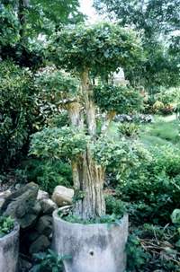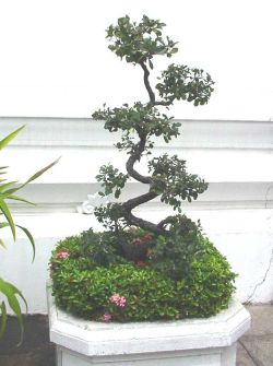 การทำให้เป็นช่อหรือพุ่ม : หลักจากเราบังคับการแตกกิ่งให้ได้ตำแหน่งตามต้องการแล้ว จะทำให้เป็นรูปทรงเป็นช่อหรือพุ่มได้โดยการตัดยอดของกิ่งนั้นออก รอให้กิ่งนั้นแตกยอดออกมาใหม่ แล้วตัดยอดที่ขึ้นมาใหม่ไปเรื่อยๆ จนมียอดและใบมากตามต้องการ แล้วจึงทำการตัดแต่งเป็นช่อหรือพุ่มให้ได้รูปทรงตามต้องการ