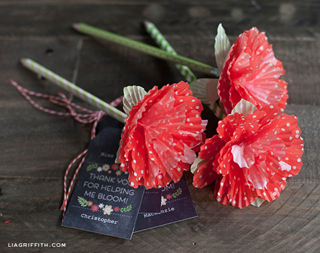 กระดาษคัพเค้กลายจุดสวยๆ สามารถนำมาประดิษฐ์เป็นดอกไม้กิ๋บเก๋ได้อย่างไร ^^ เริ่มจากนำกระดาษคัพเค้กทำเป็นดอก โดยใช้กระดาษคัพเค้ก 6 ใบ/ดอก เป็นสีแดง 5 ใบ และสีเขียว 1 ใบ ใช้ดินสอไม้เป็นก้าน ติดกาวพันรวมกัน แล้วติดการ์ดอวยพรใบเล็กๆ มอบเป็นของฝากหรือของขวัญ สามารถนำไปใช้งานได้อีกด้วยนะคะ